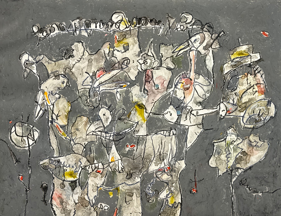 “My paintings are a private world of improvisation, spontaneity, humor and pathos, exaggeration and abandon. The images and shapes are often figurative, organic personal totem poles which in closer view become highly abstract. They reflect my travels and interest in tribal art and children’s art. Old-fashioned emotional involvement is still my main priority in painting.” – Alden Mason