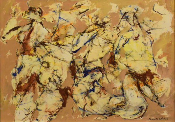 “Kenneth Callahan was before all else a painter of nature. Nature for him as his words above reveal, was more than “men, mountain streams, animals and alpine meadows.” It was the life force that breathed spirit into each insect and each mountain peak. It was “the interrelationship of man, rock, and elements; the creating and disintegration, repeated over and over: man into rock, rock into man, both controlled by sun and elements.”