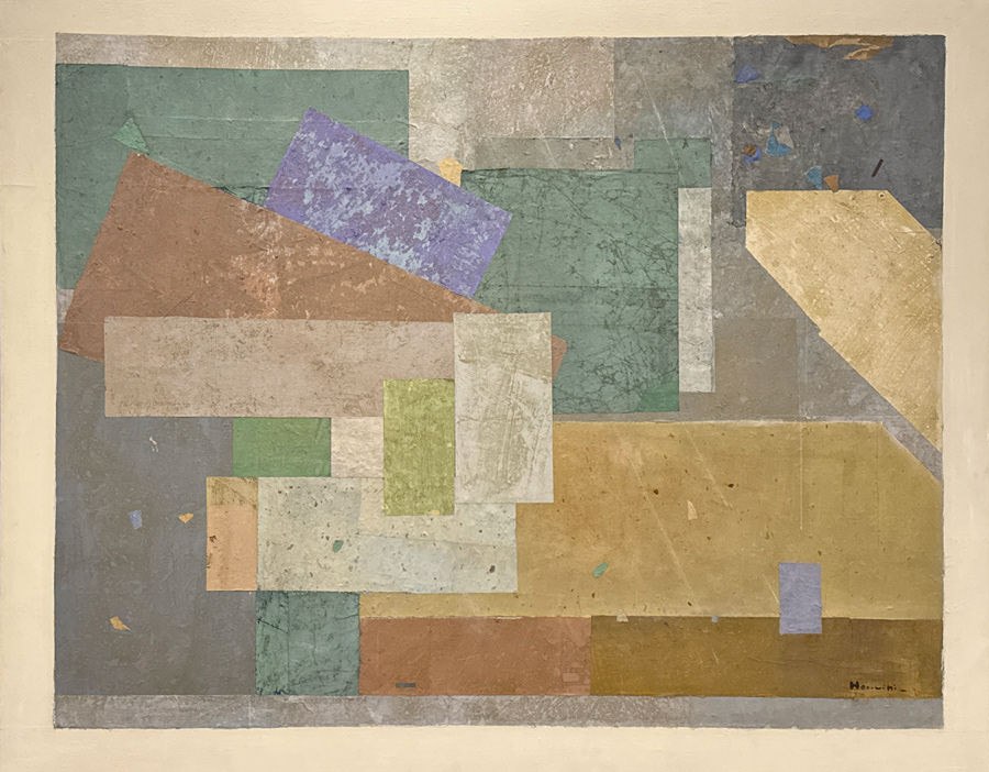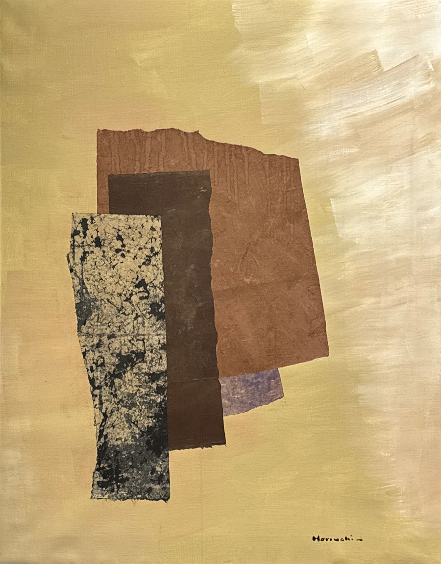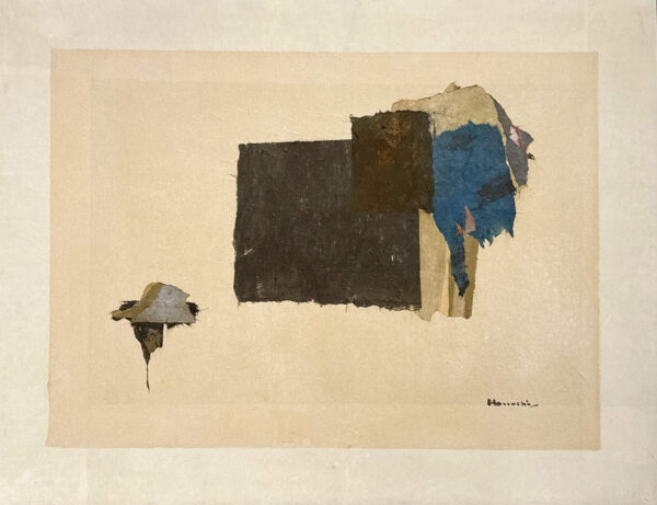 Horiuchi said that his collages are “attempts to produce areas of peace and serenity with which to balance the sensationalism- the fast, hard tempo- of our time.” Through his skillful use of paint and Japanese rice paper he has become a master at communicating this wish to his audience.