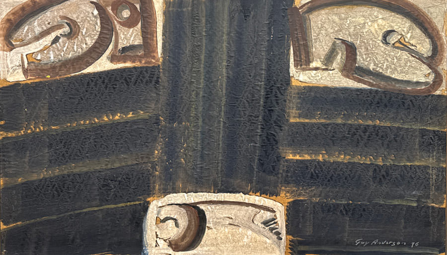 Guy Anderson, Between Night & Meaning, (Mt. Vernon Series), 1976, mixed media on paper, 14" x 21"