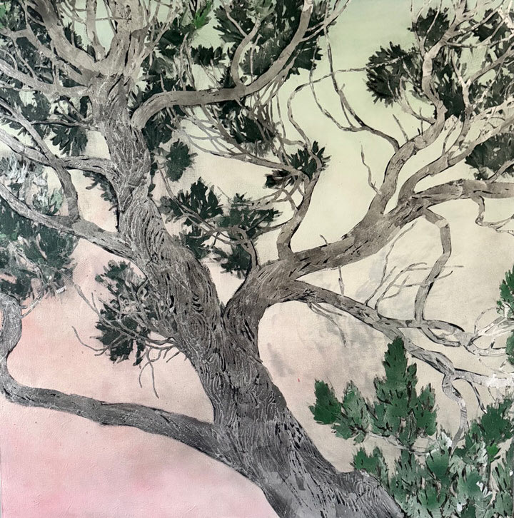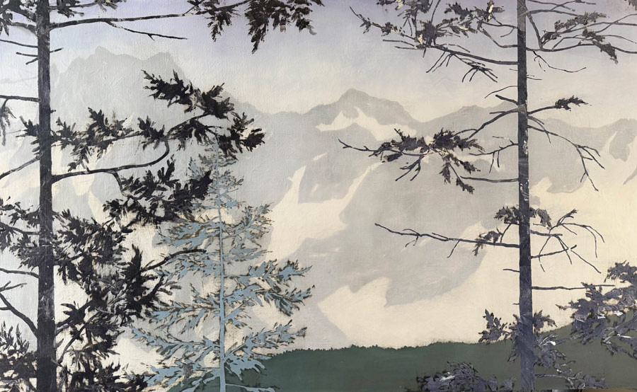 Patty Haller, Cascade Breeze, 2023, oil on panel, 38" x 50"