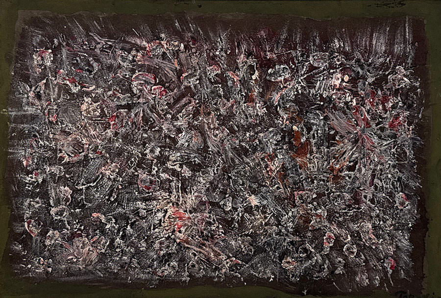 Paul Horiuchi, Winter Grey I, c. 1960, collage mixed media on canvas, 41” x 51”